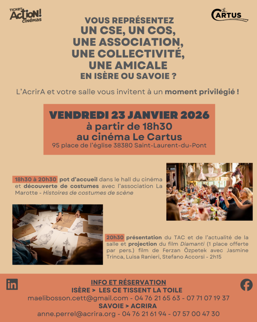 En partenariat avec l’Acrira et Le Cartus, l’association des Ce Tissent la Toile est heureuse de vous proposer cette séance.