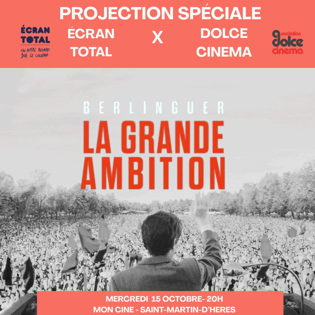 Le mercredi 15 octobre, on vous donne rendez-vous à Mon Ciné pour la projection du film Berlinguer, la Grand Ambition d’Andrea Segre. Écran Total revient à Mon Ciné – SMH du 12 au 17 novembre. Dolce Cinema au cinéma Le Club du 8 au 30 novembre. Les deux festivals se rejoignent pour une soirée de […]